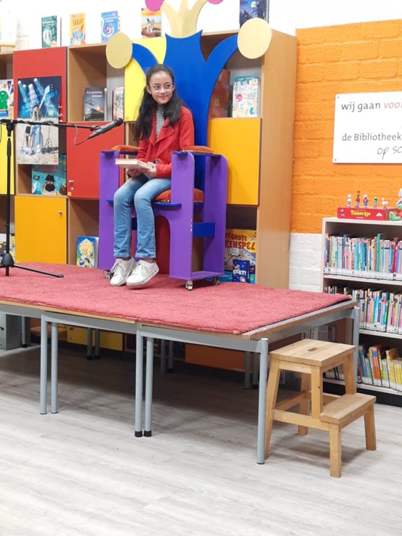 Op donderdag 9 februari was de voorleeskampioen van onze school, Amélie van Ek, één van de zes finalisten in de finale van alle scholen uit Vaassen. Ze heeft heel goed gelezen uit 'De GVR' van Roald Dahl. Volgens de jury was er een ander nóg beter! Hoe dan ook: een geweldige prestatie!